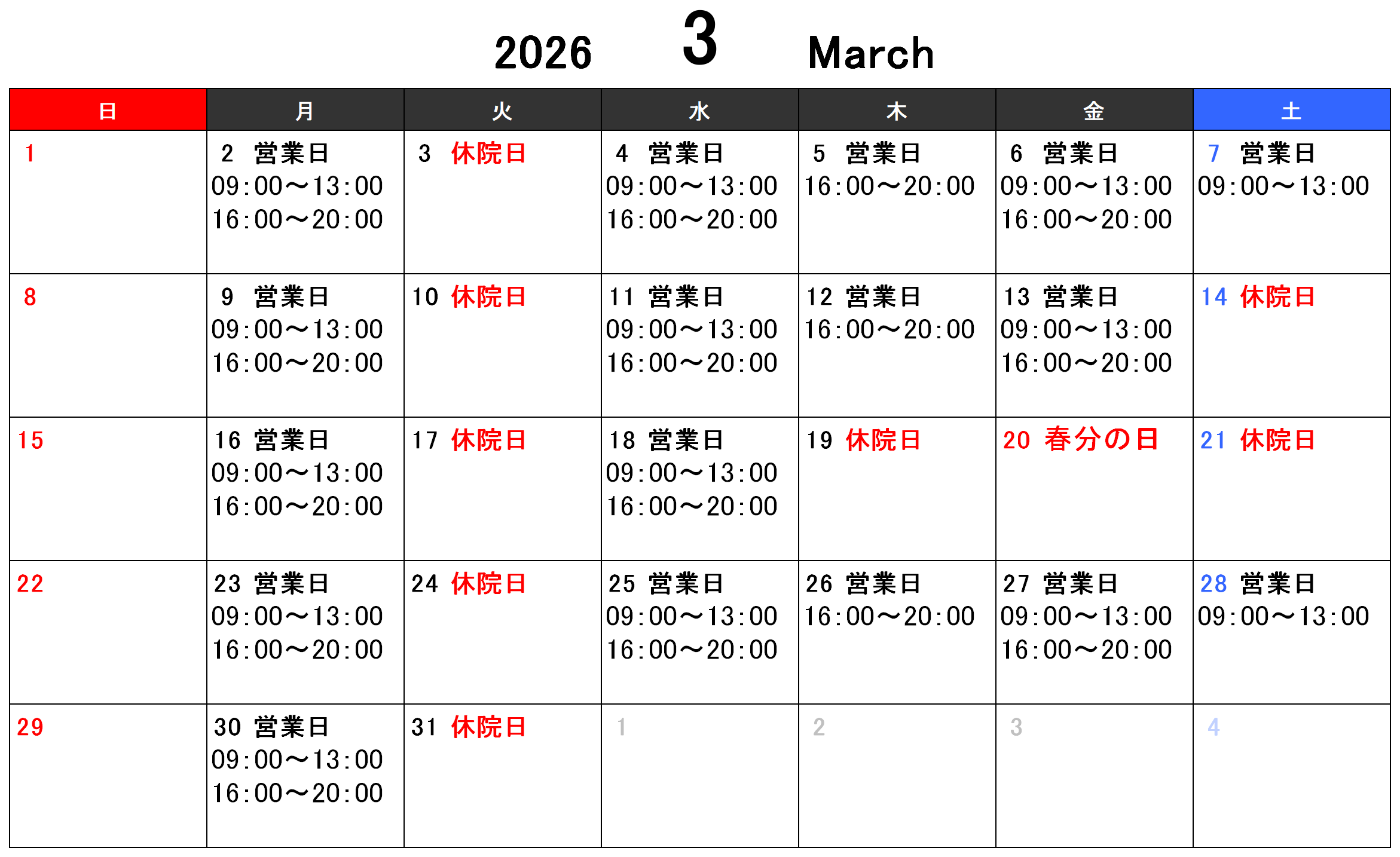 3月14日(土)と3月19日(木)~22日(日)をお休みとさせていただきます。